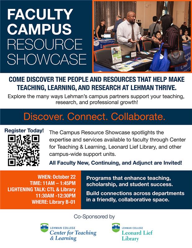 The Campus resource showcase spotlights the expertise and services available to faculty through Center for Teaching & Learning, Leonard Lief Library, and other campus-wide support units.