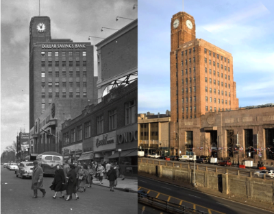 The Dollar Savings Bank, home of the Lehman Grand, then and now.